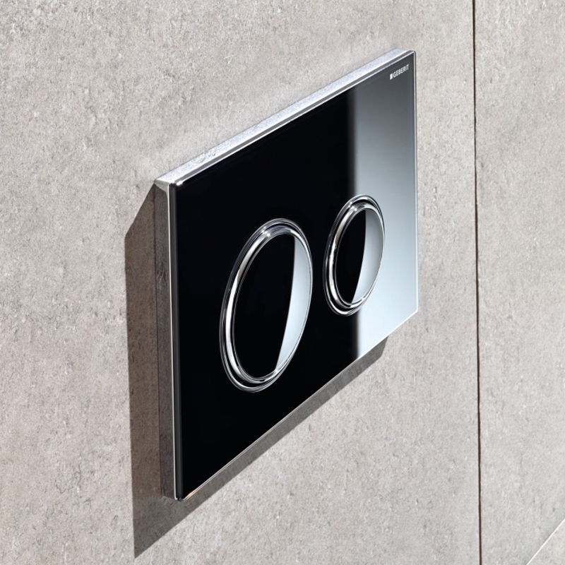 Clapeta cu actionare dubla Geberit, Sigma21, sticla neagra, cromat lucios Geberit, Elvetia