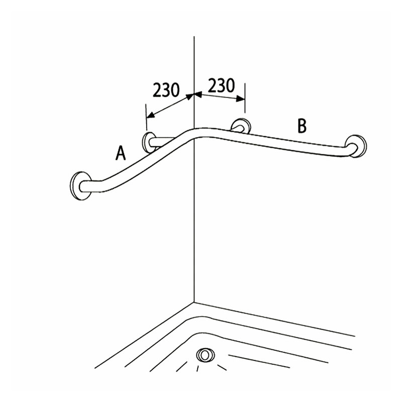 Bara de siguranta pe colt, cu tija verticala dreapta, Thermomat, 67 x 107 x 70 cm, alb