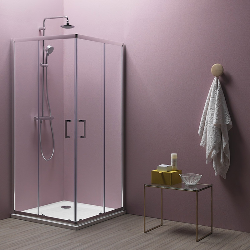 Cabina are doua parti care se fixeaza pe perete si doua usi culisante prevazute cu manere. Usile cabinei au un sistem de desprindere easy-clean, lucru care permite o curatare mai usoara.