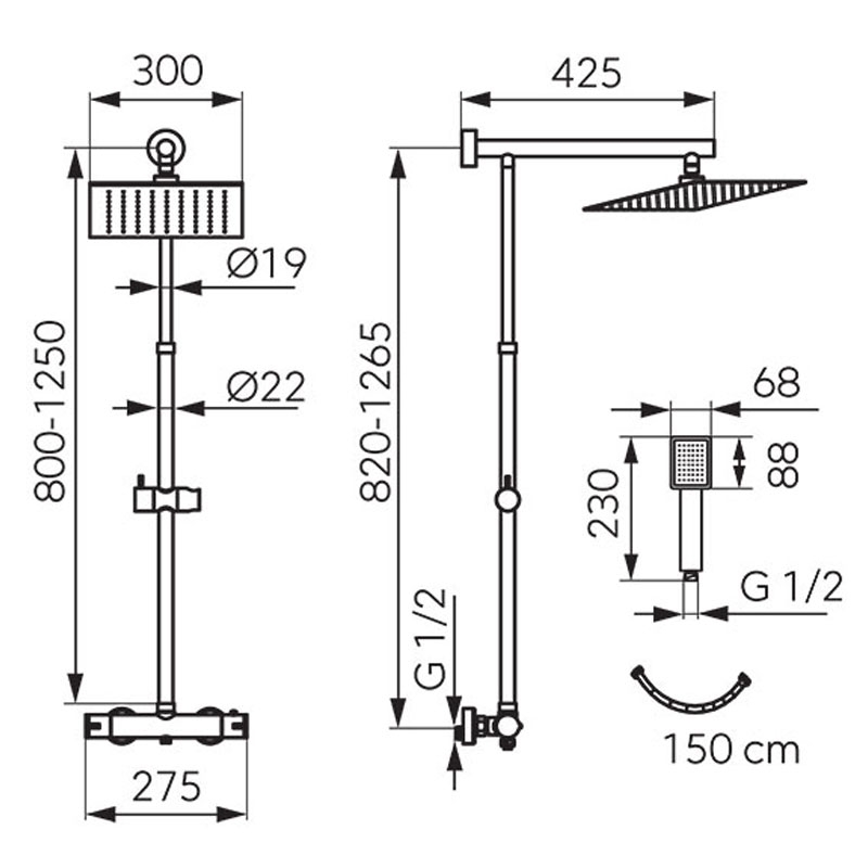 Set de dus Kludi, Cockpit Explorer, coloana de dus cu baterie termostatata, crom