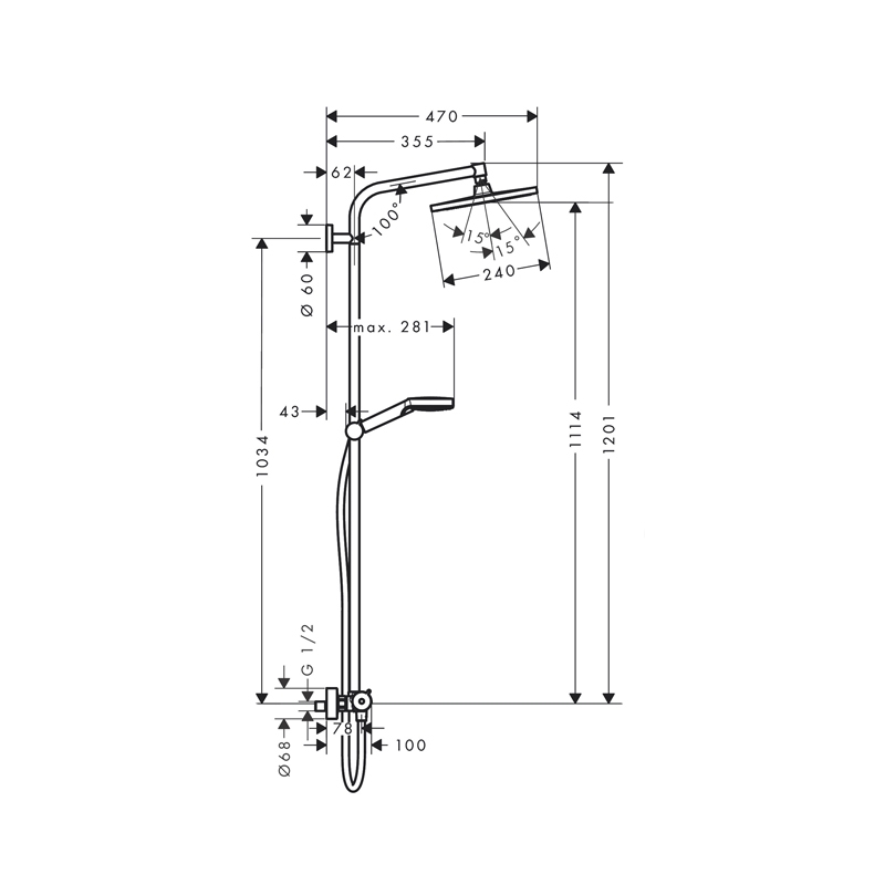 Coloana dus termostatata Hansgrohe, Crometta E 240, cu cap dus fix si mobil 1S Hansgrohe, Germania
