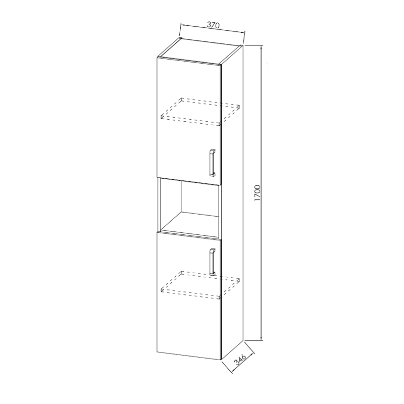 37 cm x 170 cm x 34.6 cm ( latime x inaltime x adancime )