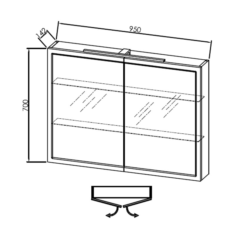 Dulap cu oglinda, 2 usi, iluminare LED, Kolpasan, Blanche, 95 cm, alb