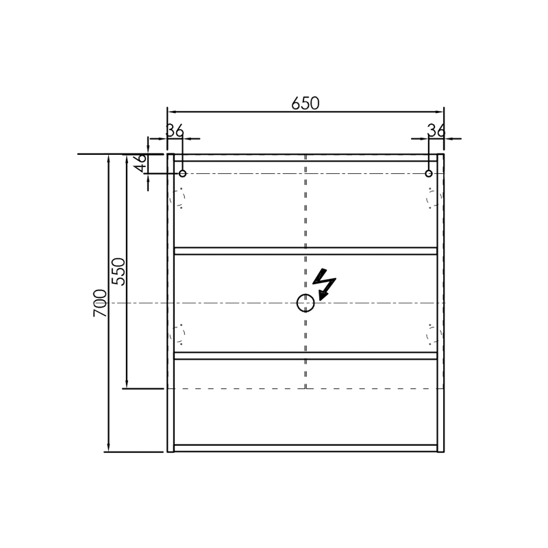 65 cm x 70 cm x 14 cm (lungime x inaltime x adancime )