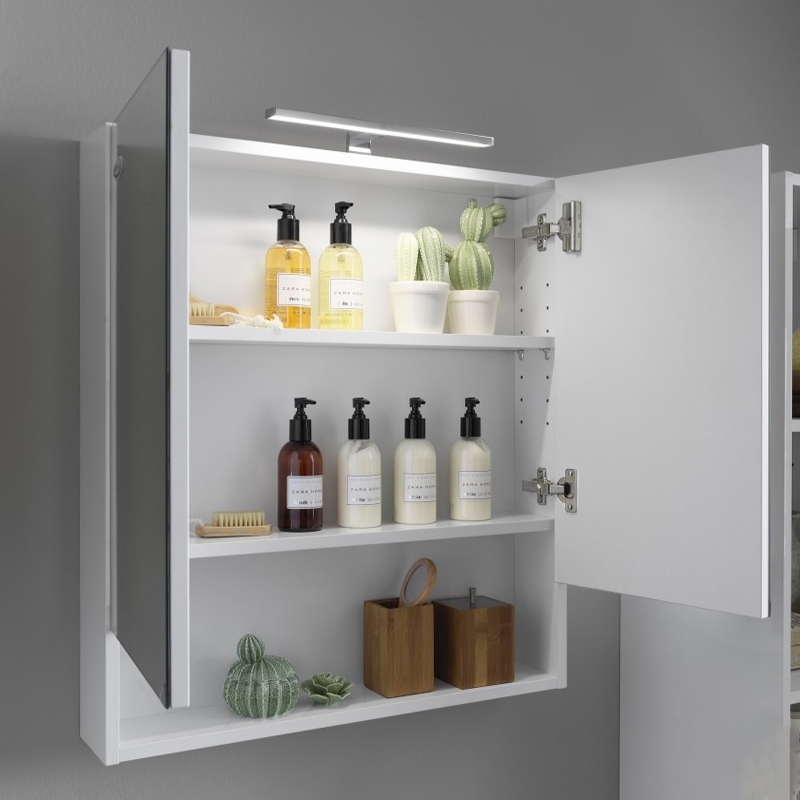 Dulap cu oglinda, 2 usi, iluminare LED, Kolpasan, Blanche, 70 cm, alb