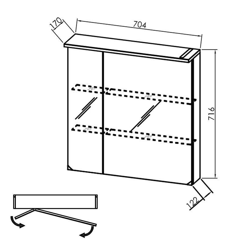 - 2 usi cu oglinzi, cu mecanism de inchidere lenta (Soft Close), vezi explicarea termenilor
