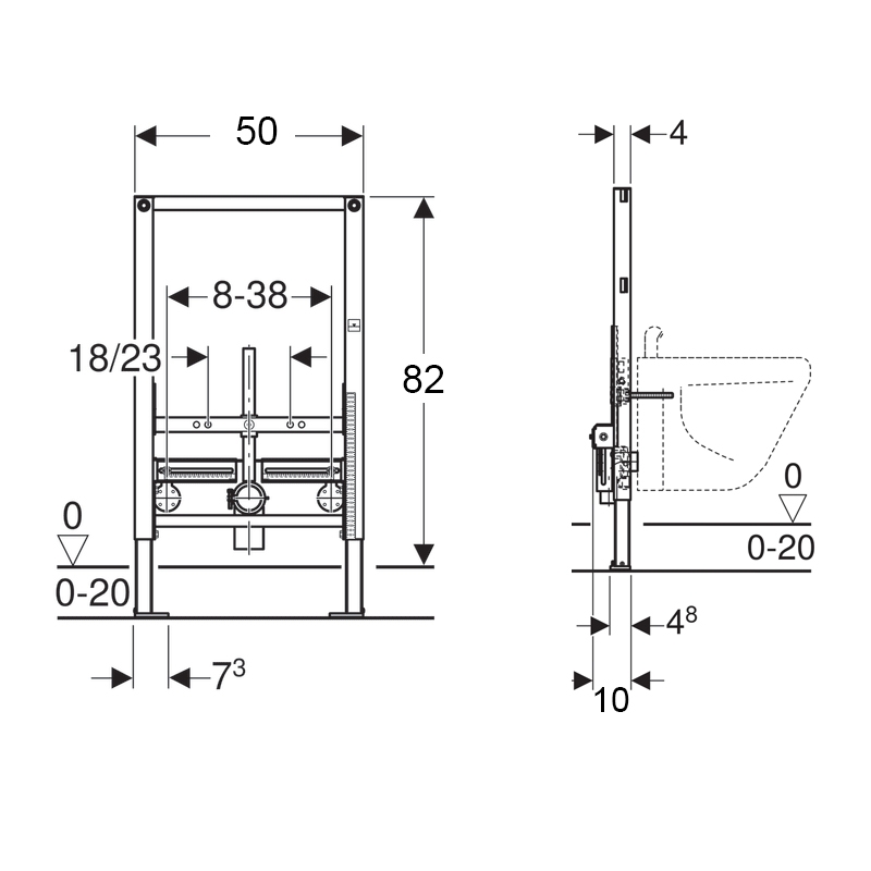 Rama Geberit, Duofix, pentru bideu suspendat, 82 cm, universal