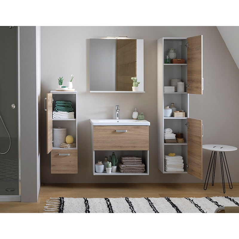 Set mobilier suspendat si lavoar Kolpasan, Lana, 65 cm, lemn deschis