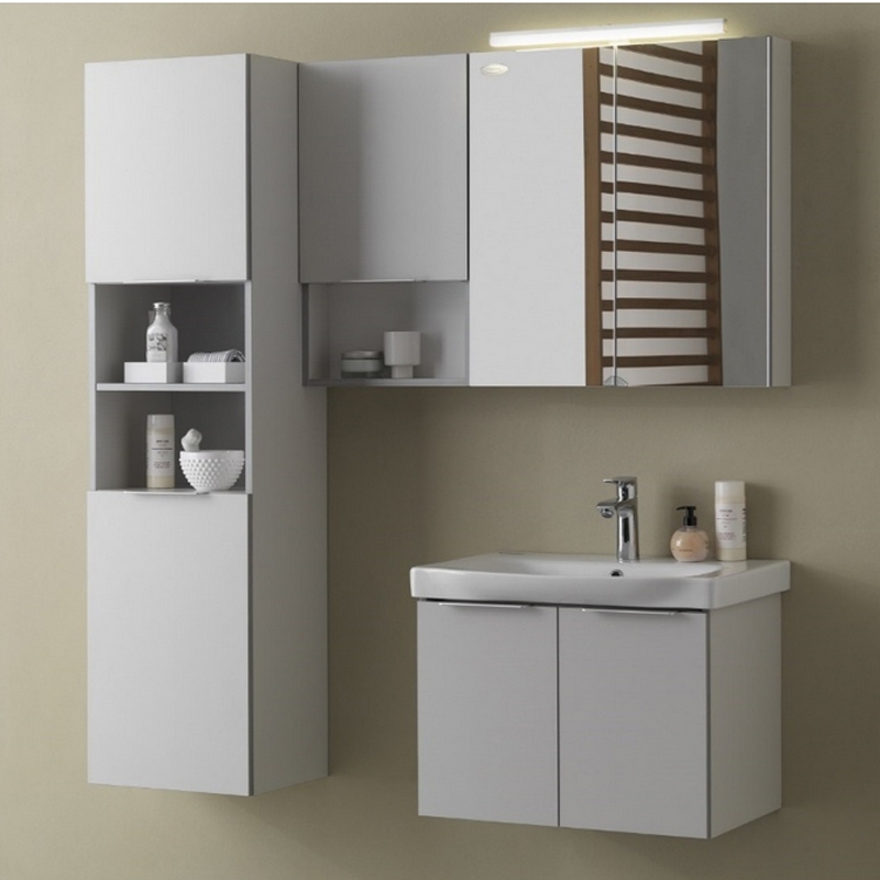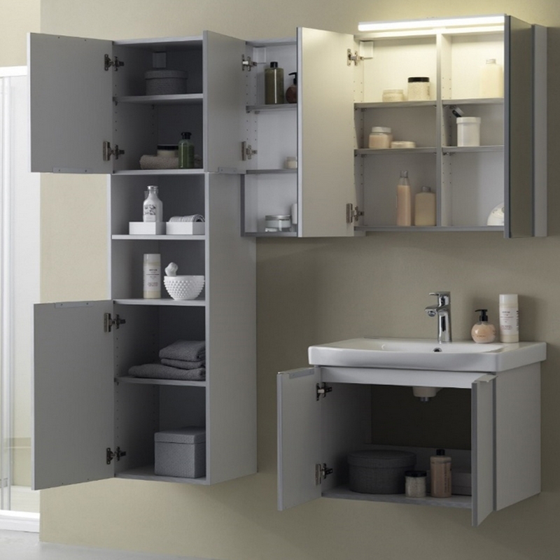 Set mobilier suspendat si lavoar Kolpasan, Lana, 65 cm, gri deschis