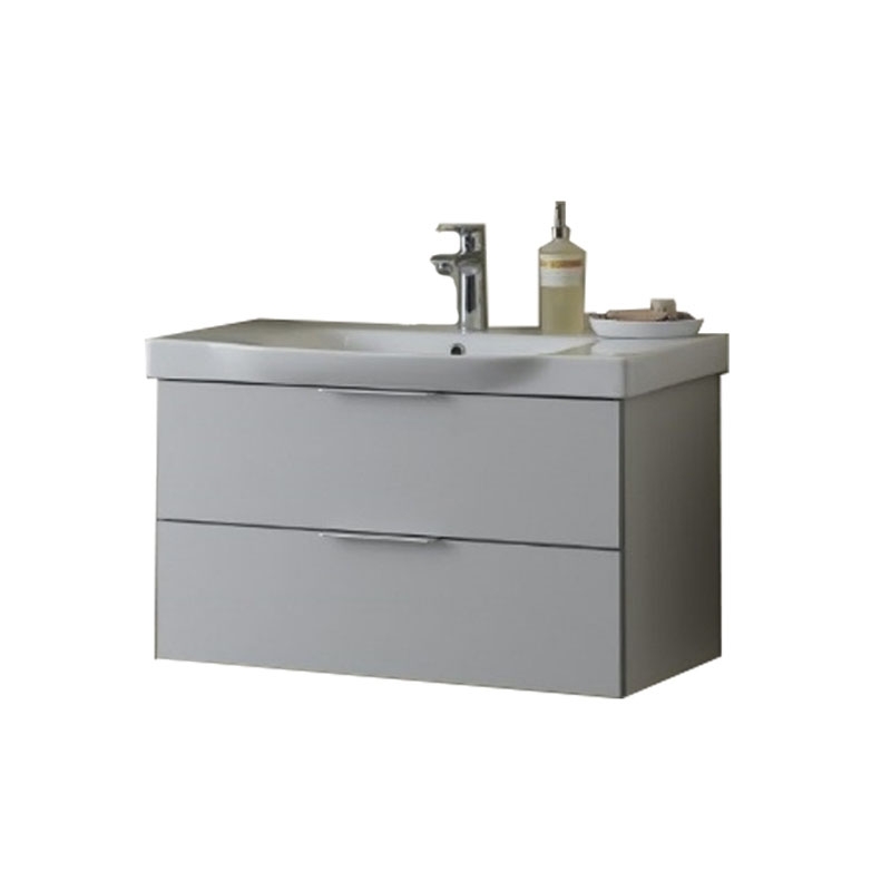 Set mobilier suspendat si lavoar Kolpasan, Lana, 80 cm, gri deschis