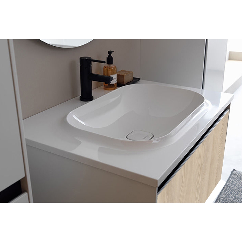Set mobilier suspendat si lavoar Kolpasan, Oxana, salcam deschis, 80 cm