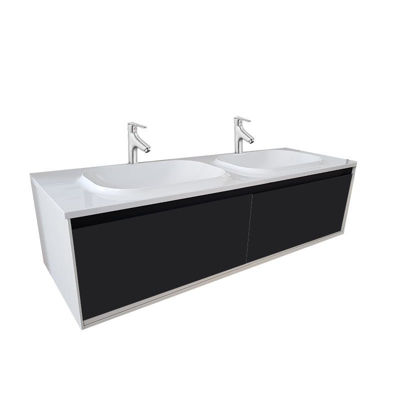 Set mobilier suspendat si lavoar Kolpasan, Pandora, 150 cm, black stone