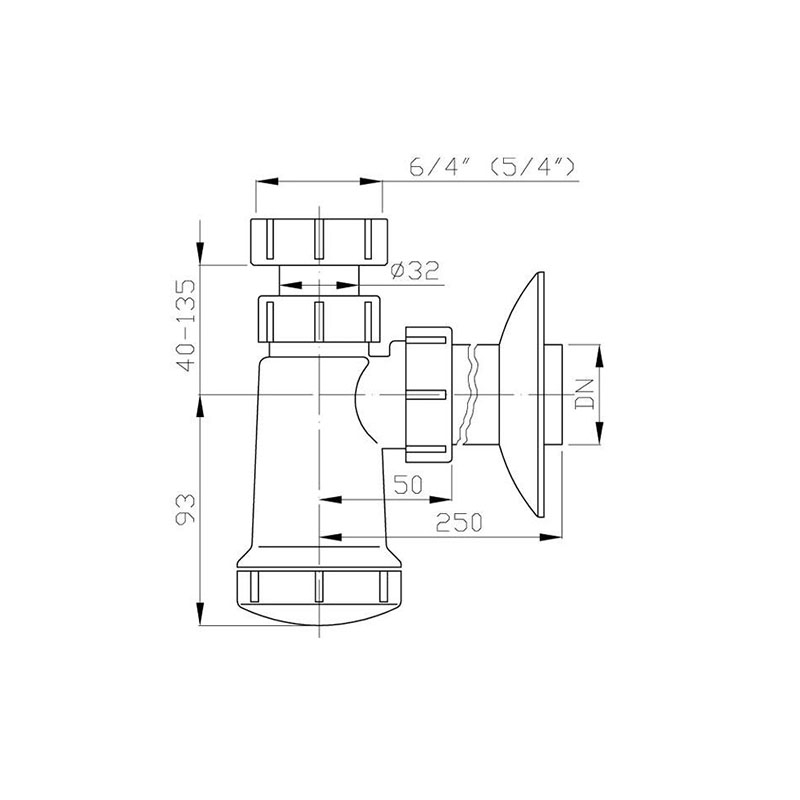 Sifon Plast Brno, pentru lavoar, cu flansa, 6/4"