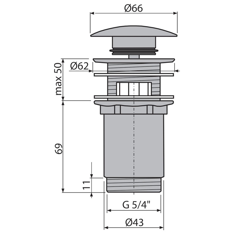 Ventil click clack Alcaplast, pentru lavoar cu preaplin, cu dop mare, alb