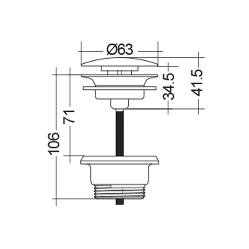 Ventil click-clack Ferro, pentru lavoare fara preaplin, cu capac mare, crom